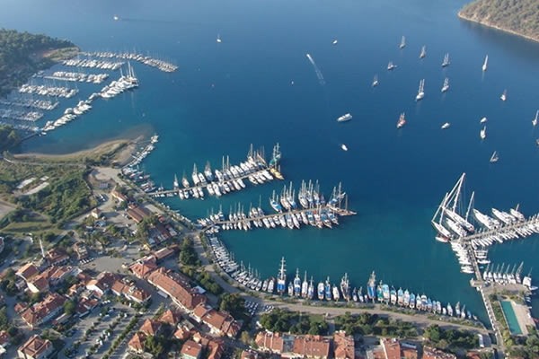 Fethiye'ye 30km mesafedeki Göcek, büyük ve küçük gemilerin girebildiği, yüzlerce yatın barındığı, önemli bir limana sahiptir.
