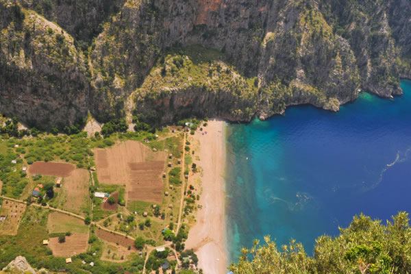 Ayrıca ölüdenizin belecekız plajı adını taşıyan kumsaldan günde 3 defa servis yapan teknelerle ulaşmak mümkün. Doğa turizminin Türkiyede en iyi adreslerinden biri olarak gösterilen Kelebekler vadisi'nde, orada bulunan ve her yıl tek başına hizmet veren işletmenin bilgisi dışında konaklamak mümkün değildir.